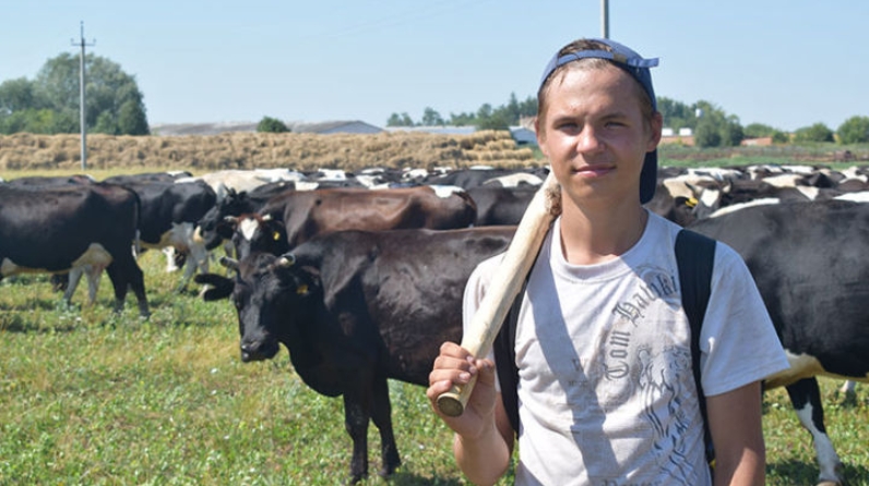 A herd of 120 heads near the village of Kuzkeevo is grazed by 17-year-old Ruslan Karpov. This year he graduated from the ninth grade. He plans to continue his studies in Naberezhnye Chelny or Kazan. While the cows are resting, he even has time to read an e-book. After all, he needs to prepare for the upcoming study.