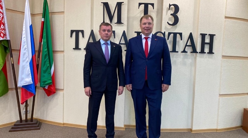 At MTZ-Tatarstan LLC, accompanied by General Director Konstantin Anisimov, Marat Zyabbarov got acquainted with the activities of the plant and the production of tractors.