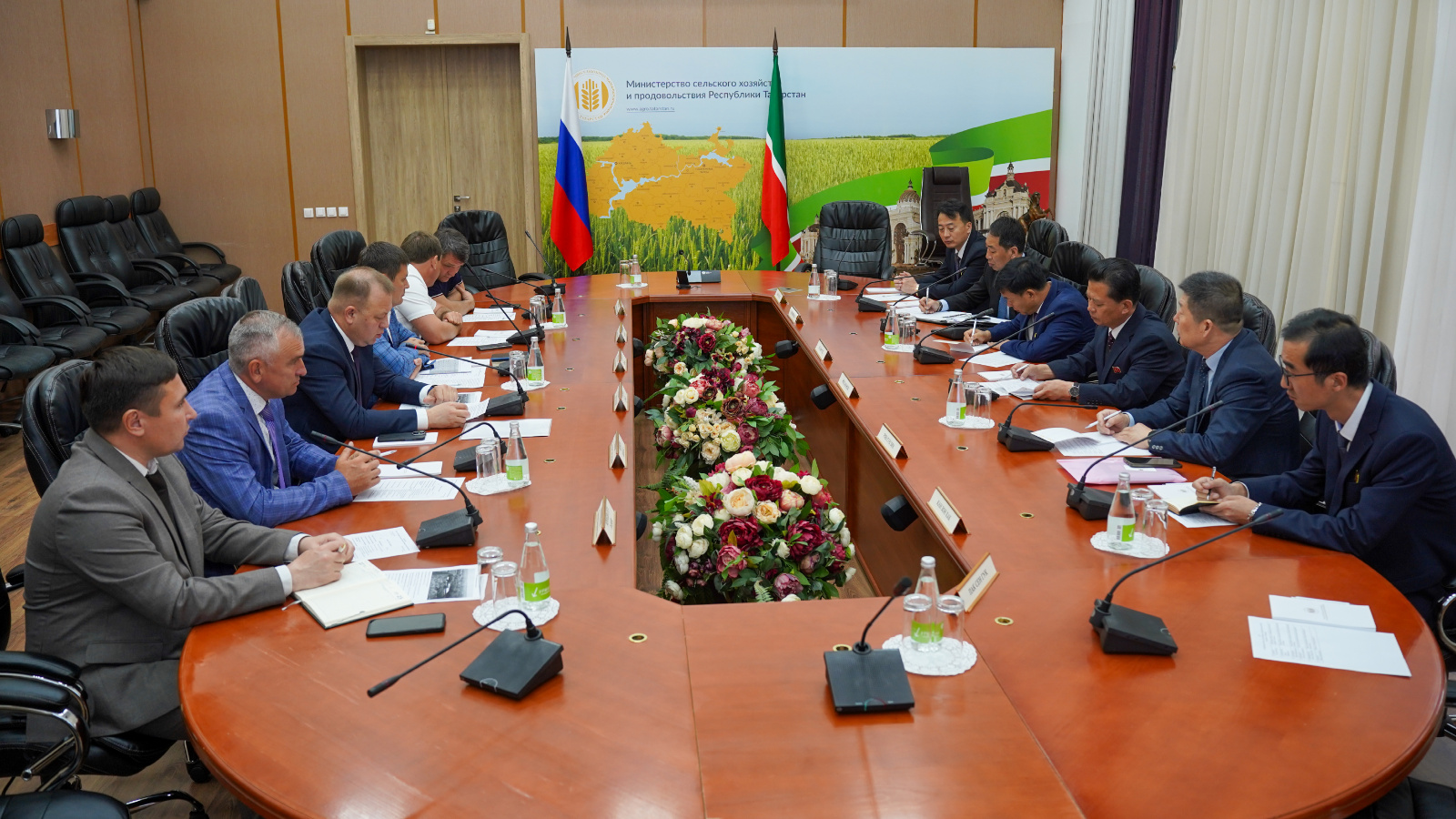 Today, a working meeting with a delegation from the Democratic People's Republic of Korea was held at the Ministry of Agriculture and Food of the Republic of Tatarstan. It was attended by First Deputy Minister Lenar Garipov, Deputy Ministers Rustem Gainullov and Rafael Fattakhov, as well as Director of Tatarsky Stud Farm No. 57 LLC Nikolay Skokov.