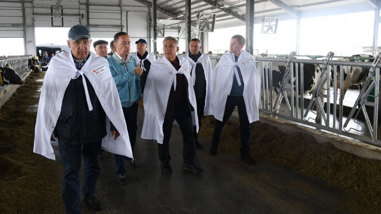 During his visit, the Head of the Republic visited the Kamsky Bacon dairy complex. The company cultivates 16,400 hectares of arable land in the Menzelinsky District. The main area is used forage to provide the livestock with high-tech feed. As of the end of August, 73,200 tons of feed had been harvested.