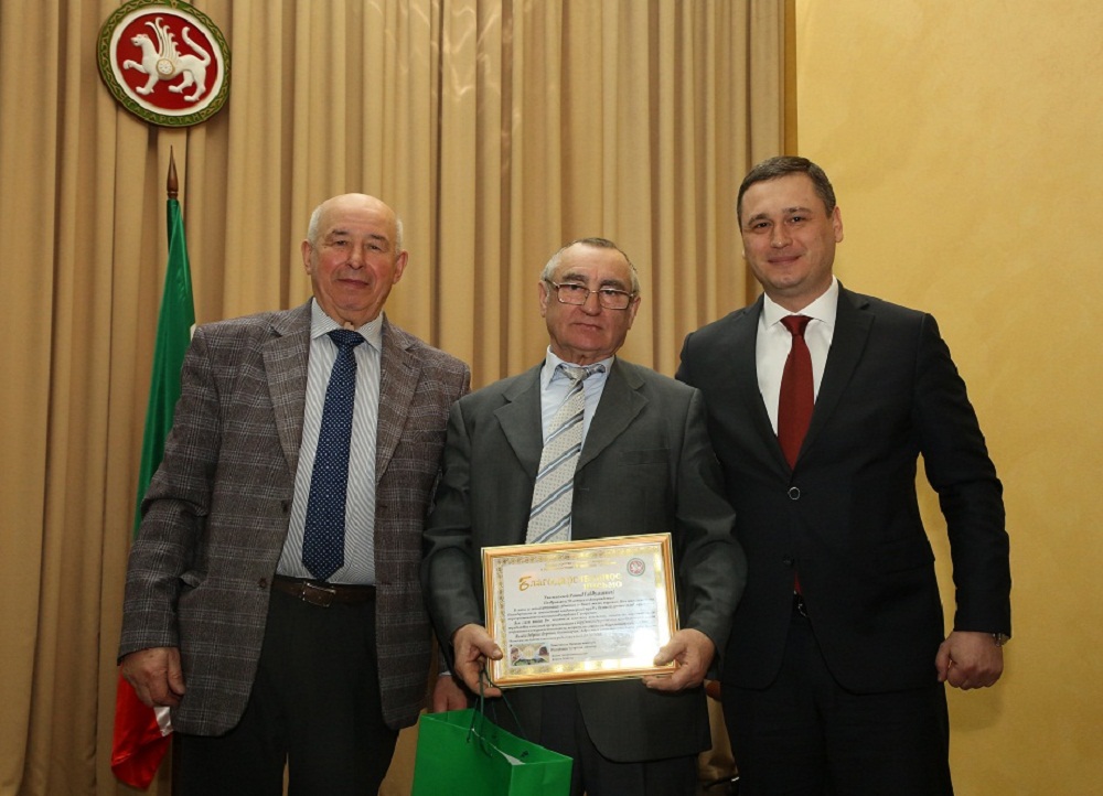Во Дворце земледельцев от имени заместителя премьер-министра Республики Татарстан – министра сельского хозяйства и продовольствия РТ Марата Зяббарова благодарственные письма Минсельхозпрода РТ получили ветеран промышленного комплекса республики Рашид Шаяхметов и бывший директор ООО «Ташкирмень» Илгиз Киямов за многолетний плодотворный труд, большой личный вклад в развитие сельского хозяйства Татарстана и в связи с 70-летием со Дня рождения.