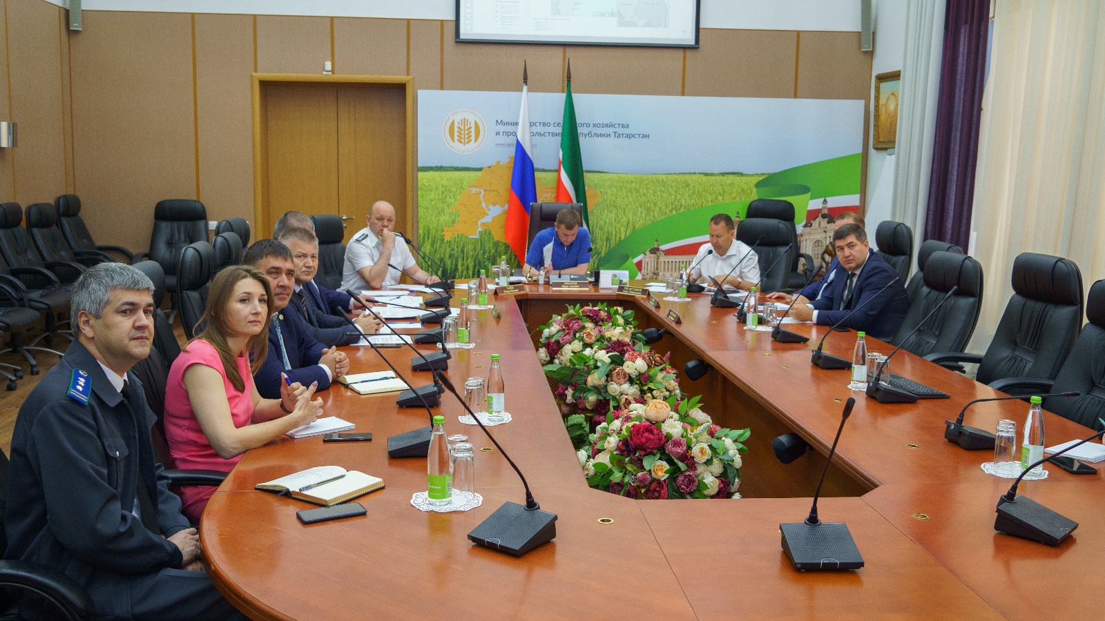 Сегодня в Министерстве под председательством заместителя Премьер-министра РТ-министра сельского хозяйства и продовольствия РТ Марата Зяббарова прошло заседание республиканского штаба по недопущению проникновения и распространения заразных, в том числе особо опасных, болезней животных на территорию Республики Татарстан. В нем приняли участие заместитель министра Ленар Гарипов, начальник Главного управления ветеринарии Кабинета Министров Республики Татарстан Алмаз Хисамутдинов, руководитель Управления Россельхознадзора по РТ Ильнур Галеев, начальники райсельхозуправлений, руководители свиноводческих и птицеводческих хозяйств.