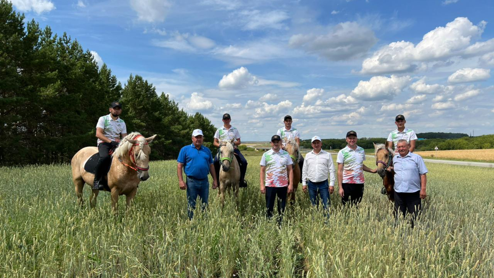 Далее участники конного пробега Татарстан – Алтай направились в Актанышский муниципальный район. Официальная встреча прошла у машинно-тракторного парка хозяйства ООО им. Нур Баяна, д. Поисеево. Там же разместили лошадей на ночлег.