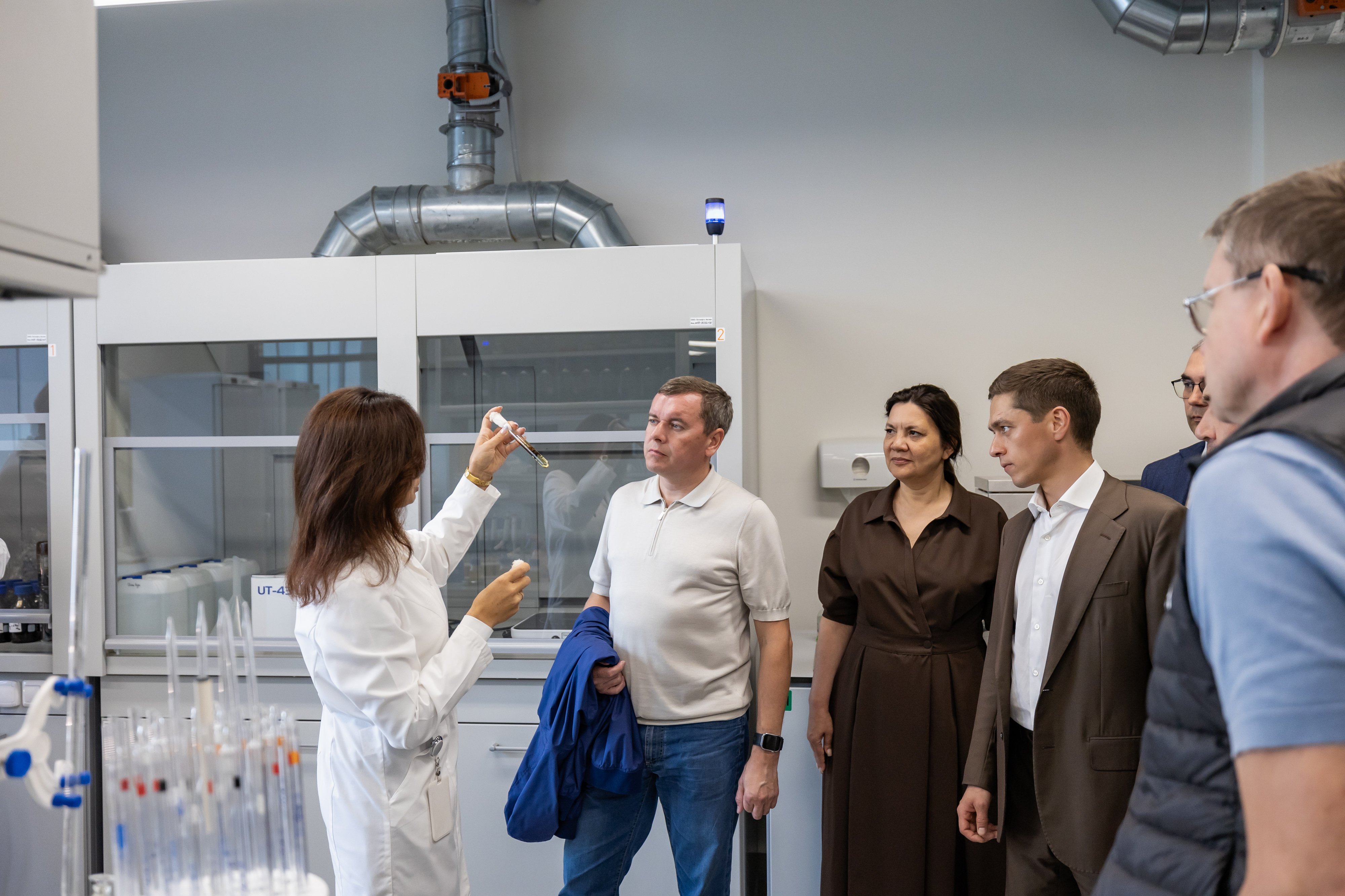 Также в ходе рабочей поездки министр посетил особую экономическую зону «Зеленая долина», где осмотрел участки по первичной и глубокой переработке лубяных культур и научно-образовательный центр «Высшая школа нефти», где посетил лабораторий исследований пород и флюидов нефтяных месторождений института и лаборатории разработки биотехнологий.