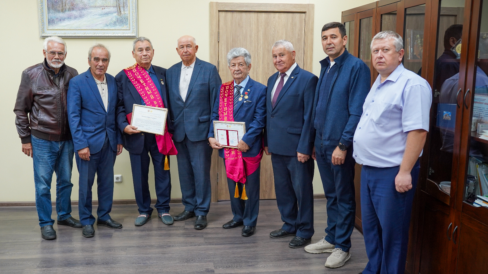 Благодаря большому вкладу в развитие сельского хозяйства, профессионализму и многолетнему добросовестному труду Назиб Мазитов и Марсил Ахмадеев получили поздравительные письма Совета ветеранов АПК РТ и нагрудные знаки «Почетный ветеран агропромышленного комплекса Республики Татарстан».