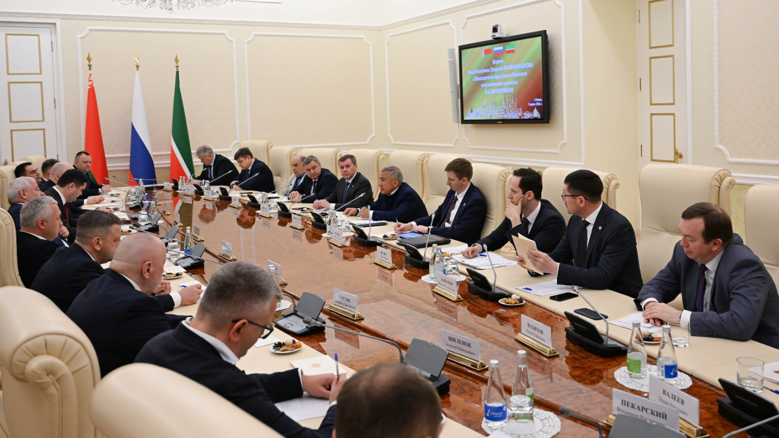 С председателем Брестского областного исполнительного комитета (Республика Беларусь) Петром Пархомчиком встретился сегодня Раис Татарстана Рустам Минниханов. Во встрече также принял участие Заместитель Премьер-министра Республики Татарстан — министр сельского хозяйства и продовольствия Республики Татарстан Марат Зяббаров.