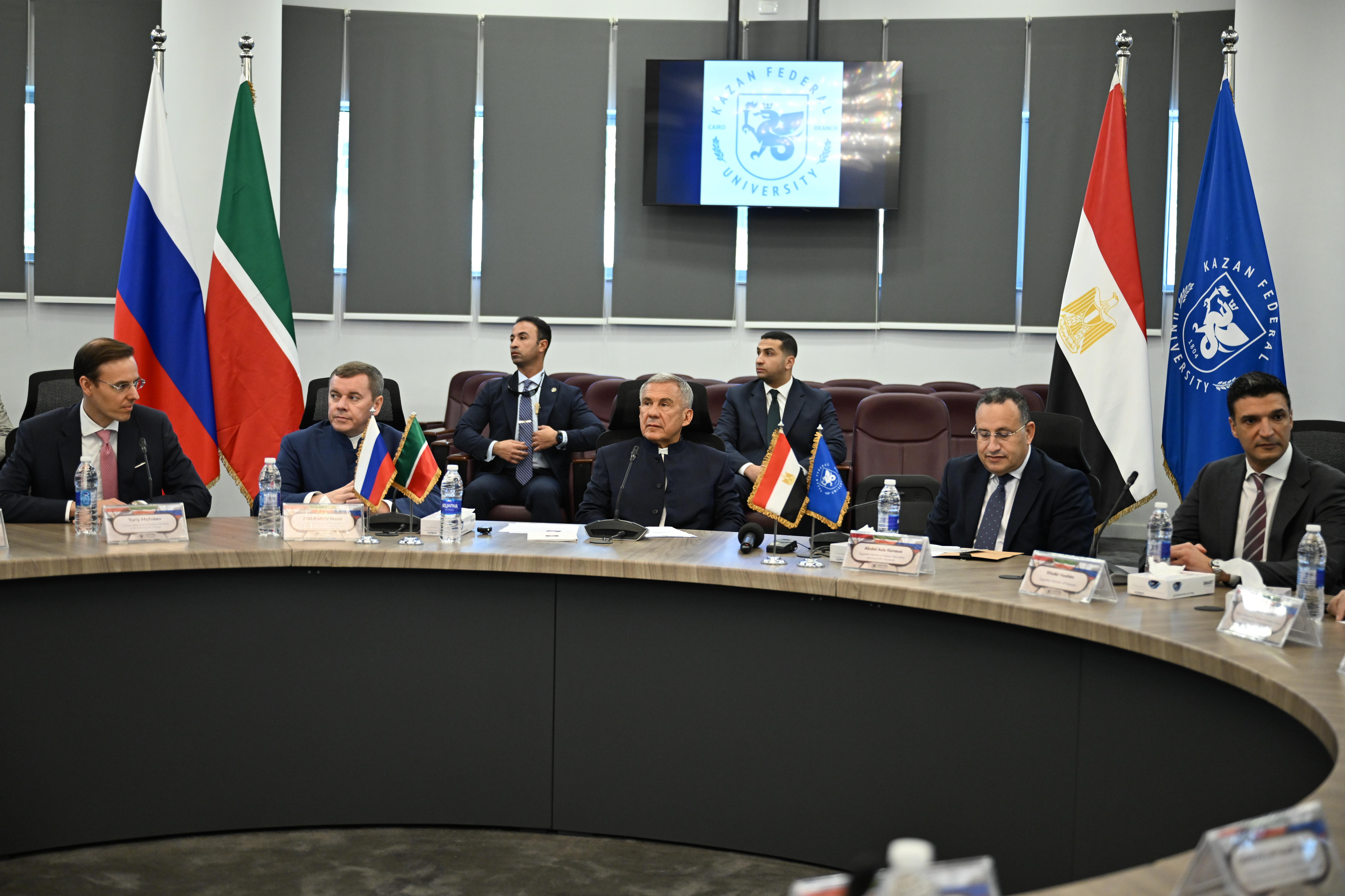 «Татарстан, как один из наиболее динамично развивающихся регионов России и связующее звено в ее контактах с исламским миром, придает отношениям наших стран дополнительную динамику и практическое наполнение. Хотел бы отметить в этой связи значительный рост татарстано-египетского товарооборота, а также высокий потенциал его дальнейшего увеличения», - подчеркнул Рустам Минниханов. Он коротко рассказал об экономическом и промышленном потенциале Татарстана и тех отраслях, которые были бы интересны египетским партнером для сотрудничества. «Наша республика открыта для инвестиций и инноваций, всегда готова поделиться своим опытом. Мы активно развиваем тему партнерского финансирования и индустрии халяль», - заключил он.