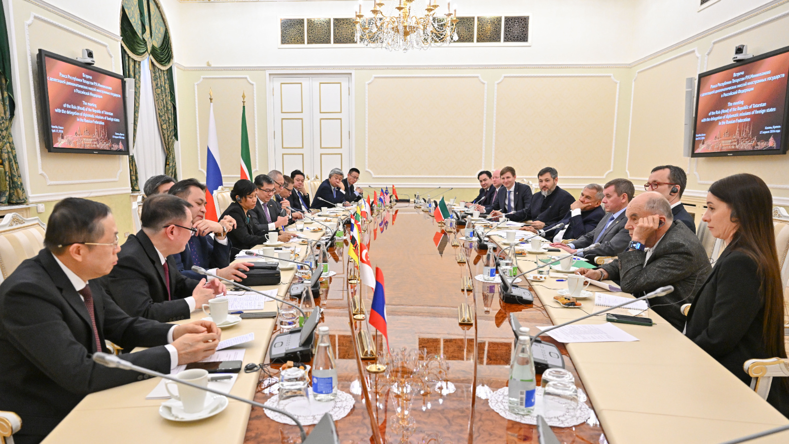 Раис Татарстана Рустам Минниханов встретился с делегацией дипломатических миссий иностранных государств в России. Во встрече такаже принял участие Заместитель Премьер-министра Республики Татарстан — министр сельского хозяйства и продовольствия Республики Татарстан Марат Зяббаров. Она прошла в Казанском Кремле. Во встрече приняли участие представители посольств Китая и 10 государств Юго-Восточной Азии: Бруней, Вьетнам, Индонезия, Камбоджа, Лаос, Малайзия, Мьянма, Сингапур, Таиланд, Филиппины.
