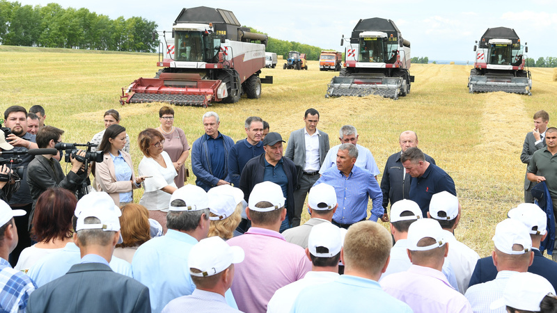 Бүген Татарстан Республикасы Президенты Рөстәм Миңнеханов Тәтеш муниципаль районында булды. Биредә ул кырларда урып-җыю эшләренең барышы белән танышты. Сәфәрдә Татарстан Республикасы Президенты белән бергә Татарстан Республикасы Премьер-министры урынбасары – Татарстан Республикасы авыл хуҗалыгы һәм азык-төлек министры Марат Әхмәтов да бар ите.