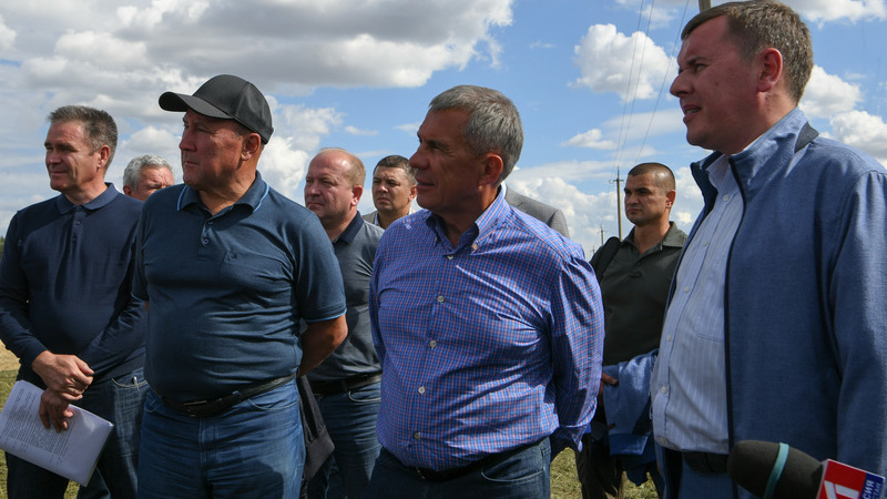 Кыят авылы янында Рөстәм Миңнеханов механизаторлар, хуҗалыклар җитәкчеләре, инвесторлар һәм авыл җирлекләре башлыклары белән очрашты.