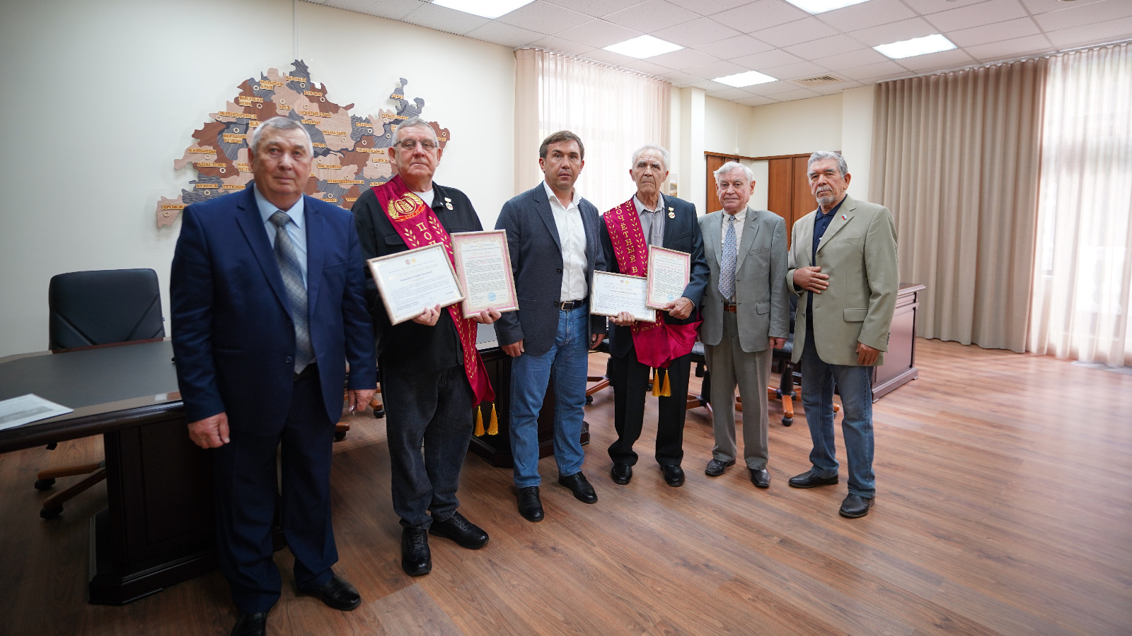 Авыл хуҗалыгын үстерүгә үзләреннән зур өлеш кертүләре, һөнәри осталыклары һәм күпьеллык намуслы хезмәтләре өчен Татарстан Республикасы агросәнәгать комплексының Ветераннар советы Президиумы әгъзасы - җаваплы секретаре Валерий Юнысов юбилярларга Татарстан Республикасы АПКсы Ветераннар советының Котлау хатларын һәм «Татарстан Республикасы агросәнәгать комплексының мактаулы ветераны» күкрәк билгеләрен тапшырды.