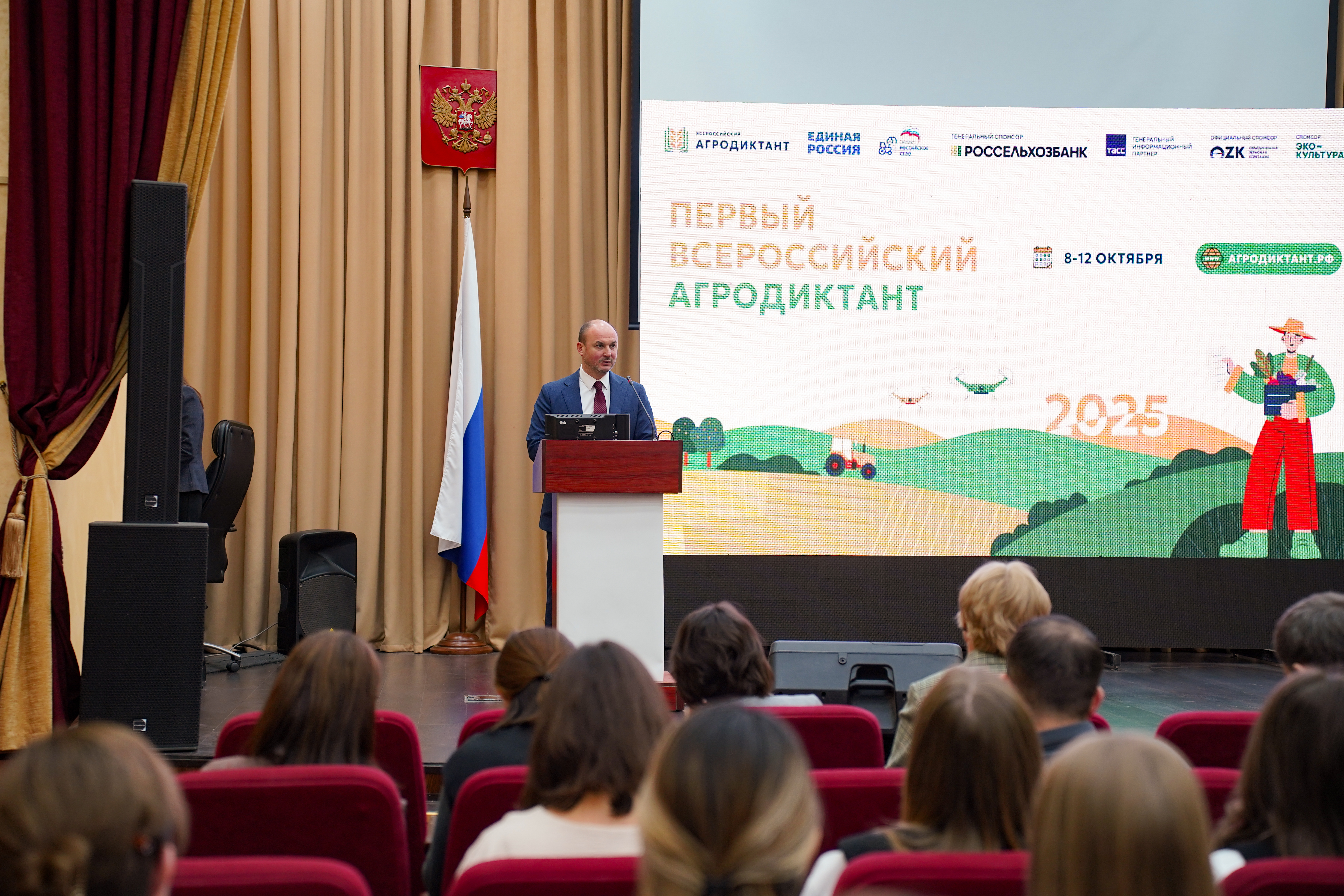 Бүген Татарстан Республикасында Авыл хуҗалыгы һәм эшкәртү сәнәгате хезмәткәрләре көненә багышланган Беренче бөтенроссия агродиктанты башланды. Игенчеләр сараенда - агродиктант язуның төп төбәк мәйданчыгында 150дән артык кеше катнашты.